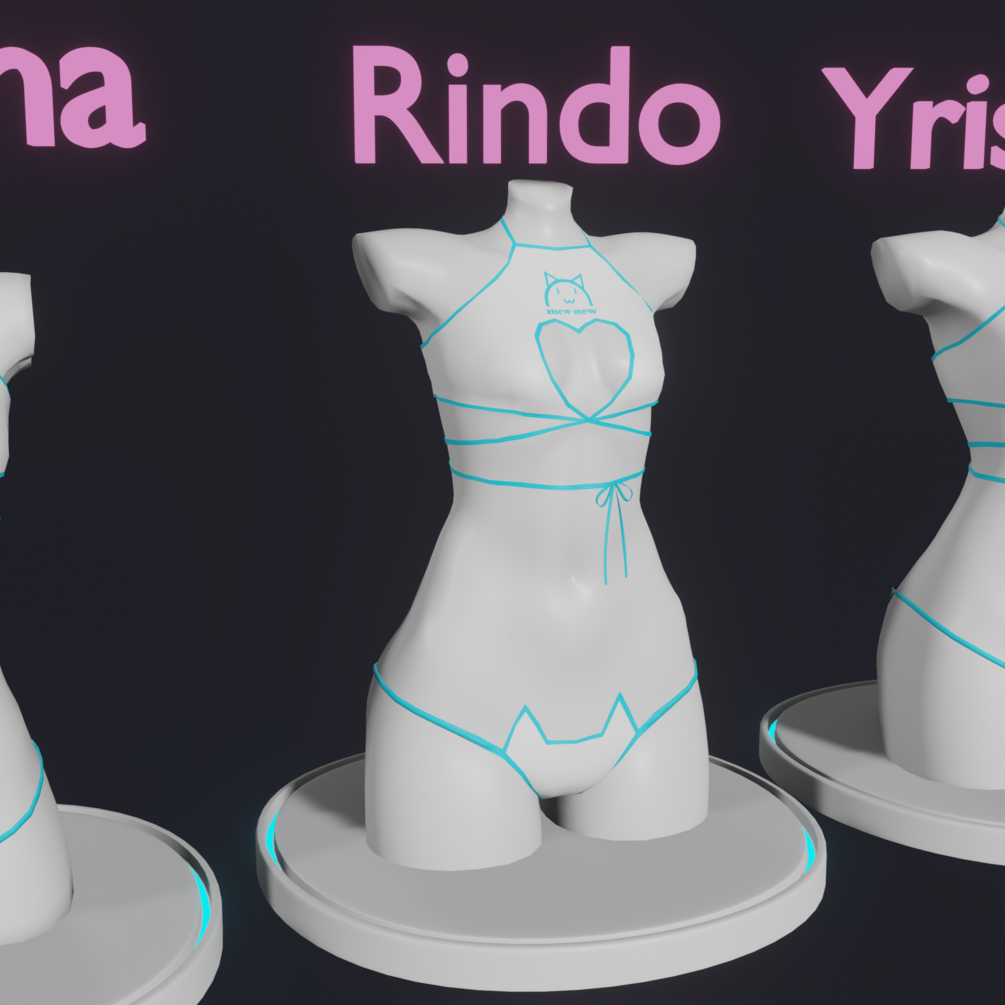 This model has 6 versions each specifically fitted for different base models: Tori, Panda, Hakka, Rindo, Rushina, and Yrishere. If there are any other bases you would like me to add to the list, please suggest it to me on my discord (https://discord.gg/3ReBHHWjCK) or message me directly on discord (Qwaczar#8008)